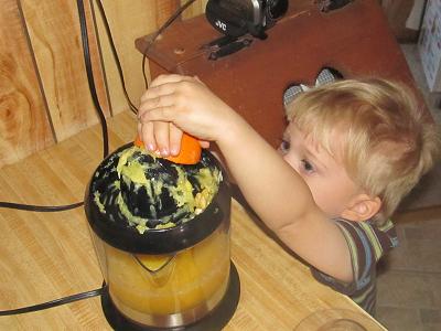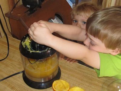 Our brothers came to help make orange juice.