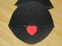 Once the mouth is dry we cut it out and then cut a small heart shape out of red foam